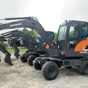 Từ năm 2022, công ty TNHH Phát Triển Xây Dựng Và Thương Mại ( DCC) ngoài nhập dòng máy xúc doosan DX55W thì đã nhập thêm dòng sản phẩm DX55WE. Mục đích đó là mang tới Qúy Khách Hàng thêm sự lựa chọn ở phân khúc máy xúc bánh lốp mini.